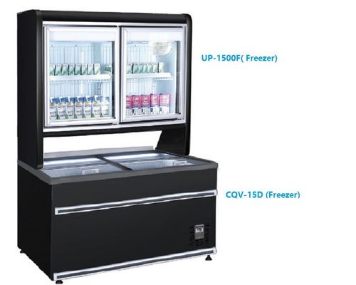 Kombiniertes chiller&freezer ist im Mini-Markt ziemlich populär, wird es aus 2 Abschnitten verfasst, könnte das obere man Kühler sein, oder Gefrierschrank, die Unterseite eine ist normalerweise Gefrierschrank.